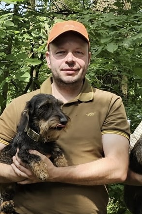 Ich bin passionierter Jäger, der in Hoch- und Niederwildrevieren zuhause ist. Jagd ist für mich kein Hobby, sondern vielmehr ein Handwerk dem ich neben meiner eigentlichen Arbeit täglich nachgehe. Jagd ist für mich Natur- und Artenschutz aber auch der Aspekt der Nachhaltigkeit und die Wertschätzung für Lebensmittel. Um waidgerecht und tierschutzgerecht jagen zu können, sind brauchbare Jagdhunde unverzichtbar. Ich habe mich bewusst für die Rasse Teckel entschieden, da diese Rasse nicht nur hervorragend in die Familie passt sondern auch zu den Jagdarten die ich ausübe. Der Teckel ist vielseitig einsetzbar und ist bei sehr vielen Jagdarten ein absoluter Profi. Ob unter der Erde, auf der Wundfährte, zum Stöbern, im Wasser und natürlich auch auf dem Sofa. Meine Hunde sind immer dabei. Sie sind vielseitig ausgebildet und stehen im permanenten Jagdbetrieb. Meine Leidenschaft gilt besonders dem Schwarzwild. Diese Wildwart die hochgradig intelligent, lern- und anpassungsfähig ist fasziniert mich. Die Nachtaktive Spannung im Mondschein, das knacken im Unterholz und das plötzliche Erscheinen der „schwarzen Schatten“ erzeugen ein Adrenalin das kaum eine andere Jagdart bietet.