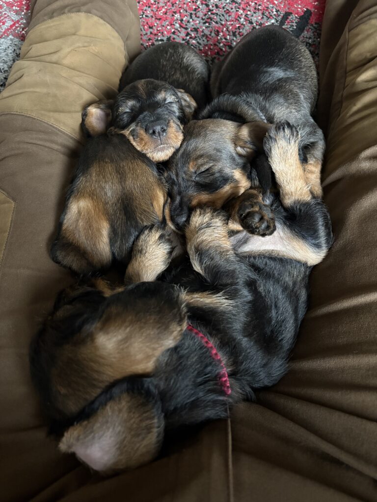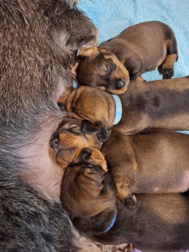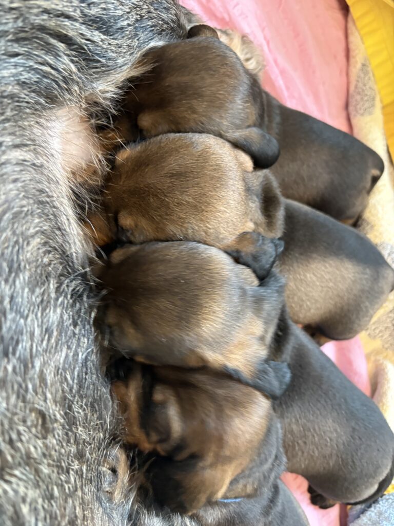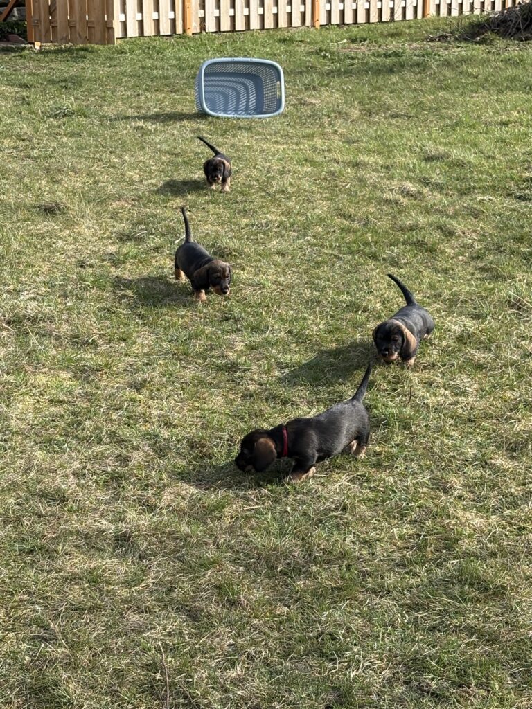 | So, 25.01.2026 | 62. Tag Es ist so weit, wir eröffnen unser Welpentagebuch vom A-Wurf. Dies werden wir wie immer regelmäßig/unregelmäßig aktualisieren und wenn es etwas Neues zu berichten gibt, findet man dies hier. Pünktlich zum Beginn des neuen Jahres hat unsere Runa, eine Hündin mit besten jagdlichen Anlagen und einem unerschütterlichen Wesen, uns 4 kleine Rauhhaar-Diamanten geschenkt! Es sind 3 Rüden und 1 Hündin, alle in den schönsten Saufarben – so, wie es sich für einen kernigen Teckel gehört. Mutter und Welpen geht es sehr gut. | |||||||||||||||||||||||||||||||||||||||||||||||||||||||||||||||||||||||||||||||||||||||||||||||||||||||||||||||||||||||||||||||||||||||||||||||||||||||||||||||||||||||||||||||||||||||||
